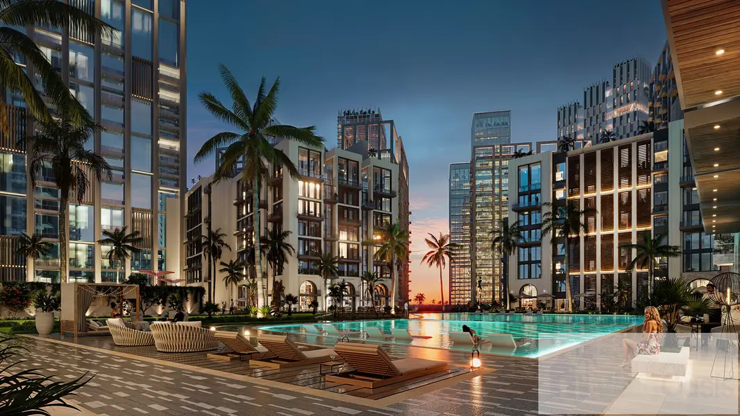 The unit features a contemporary open-plan living area, a modern fitted kitchen, a relaxing bedroom with ample storage, and floor-to-ceiling windows that invite natural light throughout the space. Residents can enjoy exclusive access to premium amenities, including a swimming pool, landscaped outdoor spaces, gym facilities, retail outlets, and easy connectivity to major landmarks in Dubai.