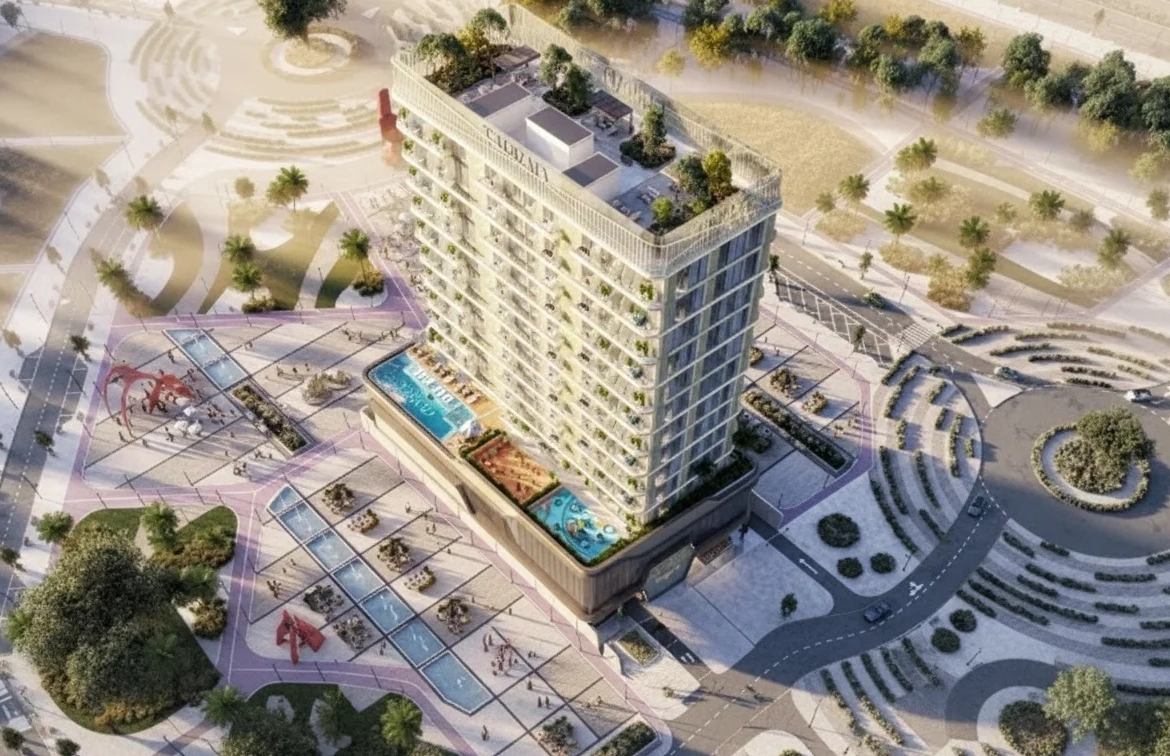 Celesto 3 is a modern residential tower by Tarrad Development located in Dubai Land Residence Complex (DLRC), Dubailand (Wadi Al Safa 5).